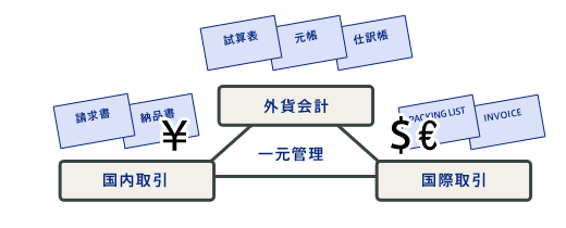 国際取引では円換算、差損益計算、評価替えなど複雑な外貨会計処理が発生。為替リスクを回避するために為替予約の締結・引当をおこなう必要もあります。